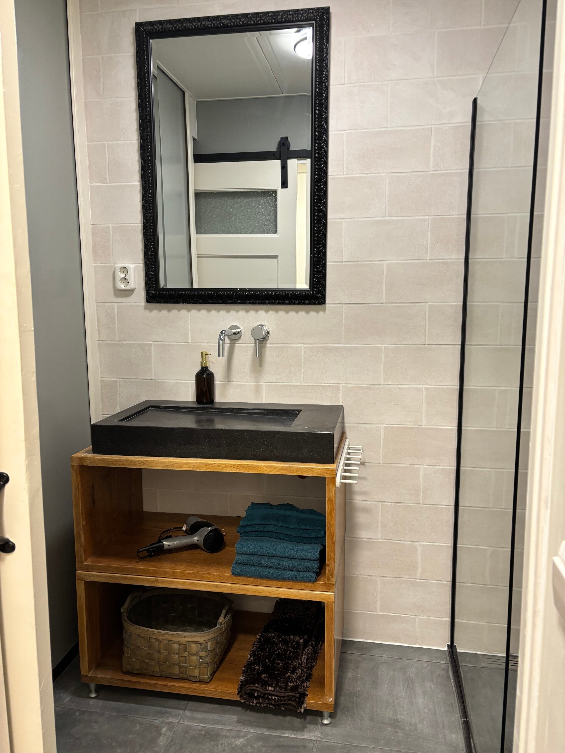 Huize Windlust has a fully equipped bathroom with a large walk-in shower. Next to the bathroom there is a separate toilet.