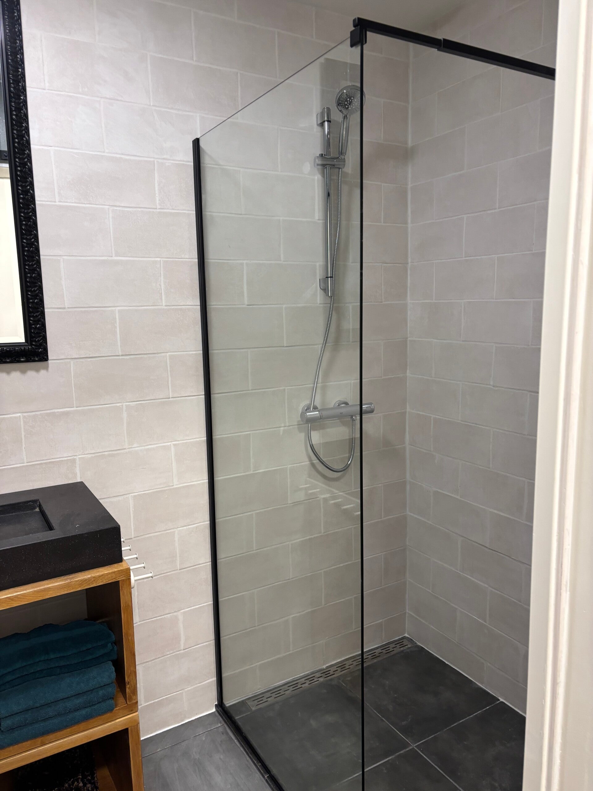 Huize Windlust beschikt over een volledig ingerichte badkamer met een ruime inloop douche. Naast de badkamer bevindt zich een apart toilet.